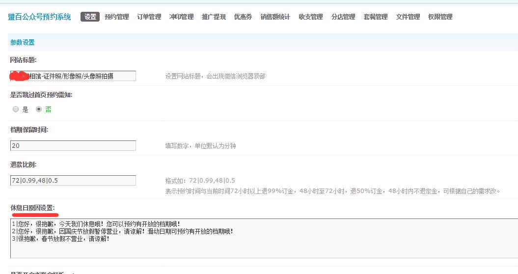 微信公眾號預約微信支付系統優化了休息日設置