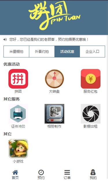 功能介紹: 一、預(yù)約保留時間:可設(shè)置訂單的保留時間,即未付款超過保留時間自動關(guān)閉訂單,重新開放預(yù)約。 二、預(yù)約時間:前臺開放14天的預(yù)約時間,后臺展示25天的預(yù)約(便于設(shè)置不能預(yù)約,如放假等),每天的凌晨自動生成預(yù)約時間,每個套餐的預(yù)約時間設(shè)置可不一樣。當前時間大于預(yù)約時間會自動改為不可預(yù)約。如現(xiàn)在為10點,所有10點前的預(yù)約時間段都不可預(yù)約了。 三、改檔期或訂單取消:已付款訂單取消預(yù)約,可根據(jù)離預(yù)約的時間退相應(yīng)比例的訂金。用戶有改檔期的功能,更改檔期后原檔期重新自動開放預(yù)約。后臺可設(shè)置是否開啟該功能及最多可更改次數(shù)。 四、短信驗證:短信驗證是驗證電話號碼的真實性,防止惡意預(yù)約,使用阿里大于短信驗證,價格≤4.5分/條。充值金額1元起充。 五、預(yù)約提醒:短信和公眾號模板消息提醒,訂單提醒商家及時知道預(yù)約,免去網(wǎng)站后臺查看。用戶預(yù)約成功,取消預(yù)約,上傳底片結(jié)束訂單。后臺可設(shè)置是不是開啟。 六、分店管理:可添加多個城市多個分店。可設(shè)置已開通的和即將開通的城市,如果只有單個城市預(yù)約直接跳過城市選項。分店可設(shè)置分店的基本信息,如分店的店名、地址、郵箱、電話、公交線、 是否啟用及啟用的套系。 七、套餐管理: 1、可設(shè)置個級分類和組合套系. 2、可設(shè)置通用或者哪個城市的套餐,通用即全部城市。 2、套餐信息:如套餐名稱、套餐原價、套餐加拍價、套餐訂金、套餐服務(wù)時間、套餐的圖標等等。 3、可在后臺上傳套系的圖標和樣片。 4、可調(diào)用分店的預(yù)約時間,也可以獨立設(shè)置套餐的預(yù)約時間段。 5、可設(shè)置是否電話預(yù)約,是否啟用。 8、可設(shè)置促銷價,每個分店可不一樣,也可以都一樣。場景如開業(yè)促銷打折 八、預(yù)約管理:預(yù)約是根據(jù)城市——分店——套餐,可管理25天內(nèi)的預(yù)約,可設(shè)置時段或者日期(天)是否可預(yù)約,默認為可預(yù)約。可根據(jù)分店隨機關(guān)閉未來五天的預(yù)約。 九、訂單管理:訂單是根據(jù)城市——分店及訂單狀態(tài)劃分,訂單狀態(tài)分:已付款、未拍攝、待付款、已退款(大于48小時取消)、用戶取消(48小時內(nèi)取消)、用戶取消、過期關(guān)閉、已結(jié)束八種,管理員可在后臺手動添加訂單。根據(jù)用戶手機、姓名、郵箱、openid查找用戶的訂單。 十、底片管理:已付款訂單可上傳多張底片,底片格式可以是jpg、png、gif格式,可添加、刪除、排序底片。上傳完底片訂單狀態(tài)可改為已結(jié)束,用戶就可以在我的訂單下載底片了。每個分店可設(shè)置一個管理員在手機上查看所有完成訂單的底片,及多個用戶可在手機上查看預(yù)約的訂單。 十一、一級分銷返利功能,可以查看推廣人數(shù),返利訂單明細和申請?zhí)岈F(xiàn)。推廣利器。可根據(jù)用戶手機、姓名、郵箱、用戶id查找用戶的信息 十二、統(tǒng)計銷售額:訂單可填寫實際消費的金額,可根據(jù)日期統(tǒng)計銷售額的功能(規(guī)則:默認統(tǒng)計實付金額,如實付金額未填將為訂單總金額)。可統(tǒng)計化妝、修片數(shù),方便統(tǒng)計及計算工資。 十三、收支管理:可了根據(jù)分店添加收入支出表,字段有收入/支出、金額、用途、日期、憑證、化妝數(shù)、修片數(shù)、操作人,憑證為上傳圖片,操作人可以多個,在分店管那添加,可根據(jù)日期段、操作人算出支出或收入的金額。 十四、月份財務(wù)統(tǒng)計表:公司的贏利狀況一目了然。 十五、權(quán)限管理:超級管理員可添加分店管理,分店管理員只能看到該分店的信息,一個分店可給多個管理員管理,分店管理員設(shè)置員工賬號的管理權(quán)限,可對文件管理、分店管理、套系管理、預(yù)約管理、訂單管理、刪除訂單、銷售額統(tǒng)計、訂單管理中添加收支、收支管理、月收入管理、推廣提現(xiàn)、沖印管理的權(quán)限設(shè)置。 十六、文件管理:可在后臺管理所有模板圖片及模板文字的功能。具有恢復(fù)最早版本的功能。 十八、、優(yōu)惠券:超過營銷利器! 1.1、可設(shè)置是否開啟優(yōu)惠券、優(yōu)惠券金額、優(yōu)惠過期周期、開啟發(fā)放優(yōu)惠券通知。 1.2、預(yù)約的客戶結(jié)束訂單會生成一個優(yōu)惠券碼,并通過公眾號發(fā)送消息給客戶。得到的優(yōu)惠券碼可下次預(yù)約時輸入券碼立減金額,也可把券碼發(fā)給別人用。 1.3、用戶可在后臺查看優(yōu)惠券的詳細信息,優(yōu)惠券狀態(tài)分類為未消費、使用中、已消費、已過期。 1.4、管理員可在后臺管理優(yōu)惠券及改變優(yōu)惠券的狀態(tài),如把未消費改成已消費等。 1.5、可生成優(yōu)惠券及導(dǎo)出csv文檔,在預(yù)約輸入優(yōu)惠券碼減價使用。場景如:在新浪微博生成微卡券,上傳優(yōu)惠券碼,客戶預(yù)約時輸入券碼減價,也可以在線下發(fā)優(yōu)惠券。 十九、積分大轉(zhuǎn)盤(本模塊為收費模塊):大轉(zhuǎn)盤游戲是圍繞積分和優(yōu)惠券展開,讓會員主動分享,以達到增加粉絲的效果,具體流程如下: 已關(guān)注的粉絲可通過分享頁面或者專屬分享二維碼給朋友或者朋友圈,朋友通過其