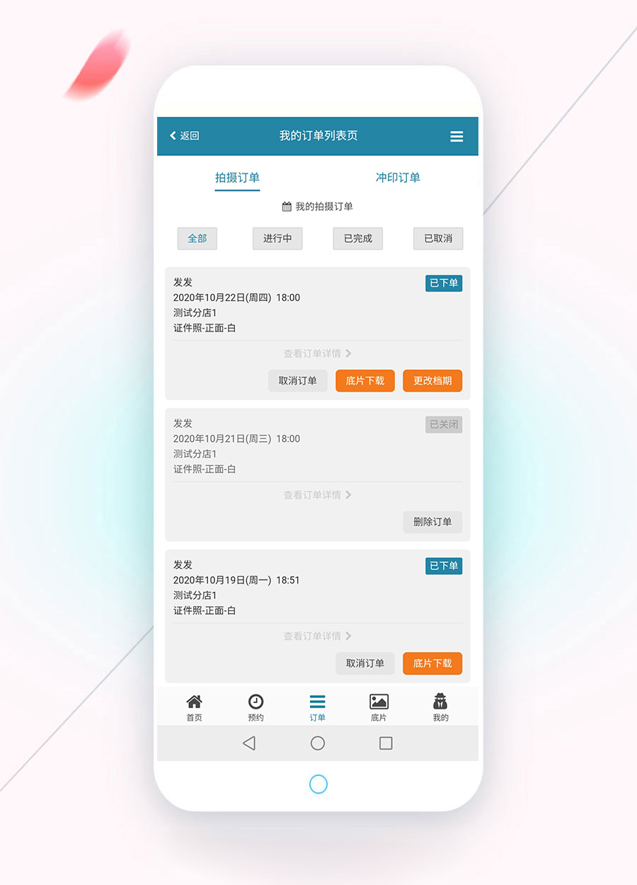 [優化]訂單列表頁新增下載底片鏈接、取消訂單、付款、刪除訂單、更改檔期功能。