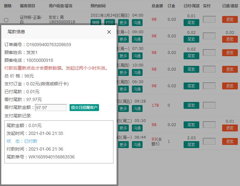本次更新了以下功能: 一、新增了支付尾款的功能,流程:員工在后臺提交顧客支付尾款——顧客收到公眾號提醒點擊進去,自動彈出支付輸入密碼框付款(也可進入訂單支付)——支付成功員工收到公眾號提醒。 可設置pc端發起支付和手機端接收通知的賬號權限。 可多次發起尾款支付。 二、優化了首頁樣式5中的列表樣式,可隨意設置列數。 三、優化拼團模塊的后臺并改成可多次退款。 四、套餐新增預約不可退訂金功能。這個用于促銷力度大,客戶取消預約不退訂金,前端和訂單處也做了提示用戶。如有客戶做活動已排期到四月份。 五、套餐新增可設置跳過預約時間,即不選擇檔期可下單。 六、充值有禮新增可增送物品之類,訂單新增三個字段:是否領取、領取時間、備注事項。 七、新增設置底片默認保留時長和手動批量刪除功能,不設置即長期保存。 |
