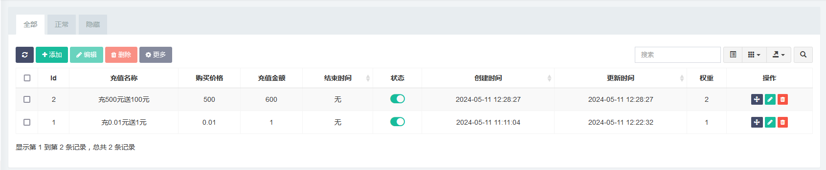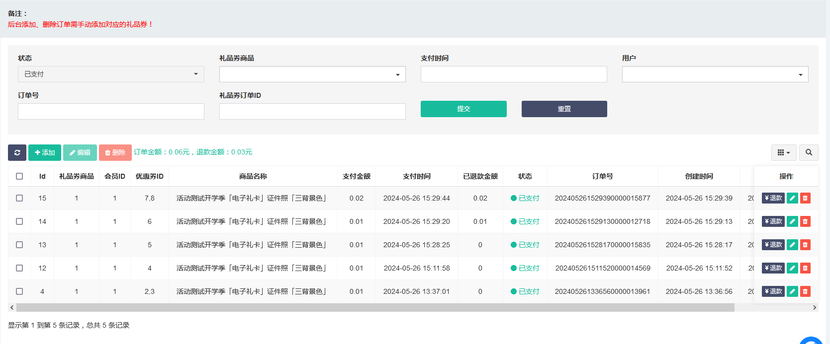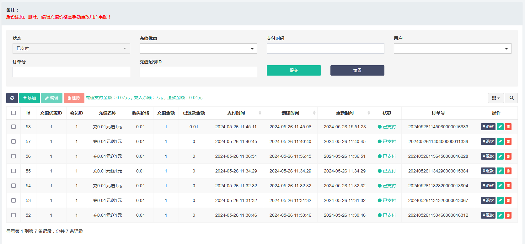本次主要新增五個功能。 一、新增禮品券秒殺功能,同時支持開始倒計時和結(jié)束倒計時。本功能預(yù)售方式以達(dá)到增加銷量,顧客下單自動生成禮品券,禮品券可本人或者贈予好友使用,并有統(tǒng)計功能。 二、新增充值優(yōu)惠,充值送一定金額,如充500送100元,以便提前收到資金。并有統(tǒng)計功能。 三、優(yōu)惠券新增贈予功能。 四、DIY頁面圖片櫥窗組件新增五圖櫥窗、兩圖左窄右寬、兩圖左寬右窄。 五、新增按功能模塊下單通知。 / 禮品券功能介紹 / 禮品券可做為秒殺活動,同時支持開始倒計時和結(jié)束倒計時。活動結(jié)束后自動恢復(fù)原價,也可正常下單,本功能以預(yù)售方式增加銷量,顧客下單自動生成禮品券,禮品券可本人或者贈予好友使用,并有統(tǒng)計功能。 1. 后臺界面展示 添加禮品券活動 添加禮品券規(guī)格 禮品券商品列表 禮品券訂單列表,可手動退款并通知顧客,并有統(tǒng)計功能 2. 前臺界面展示 /充值優(yōu)惠功能介紹 / 充值優(yōu)惠即充值送一定金額,以便提前收到資金。并有統(tǒng)計功能能 添加充值優(yōu)惠商品 充值優(yōu)惠商品列表 充值優(yōu)惠訂單列表,可手動退款并通知顧客,并有統(tǒng)計功能 前臺界面 /優(yōu)惠券贈予功能 / 優(yōu)惠券贈予功能可提高優(yōu)惠券的使用率。 /DIY頁面新增樣式 / DIY頁面圖片櫥窗組件新增五圖櫥窗、兩圖左窄右寬、兩圖左寬右窄。 /其它更新 / 1、新贈以模塊方式管理員接收通知,如禮品券、充值優(yōu)惠顧客下單管理員收到通知。 2、優(yōu)惠券新增活動備注和第三方平臺券碼,如抖音、美團(tuán)券碼。 3、前臺新增余額明細(xì)。 4、優(yōu)化商品詳情頁界面。 以上為僅為部分功能介紹,更多的功能請到本公眾號演示站體驗,或聯(lián)系以下微信號體驗后臺 |