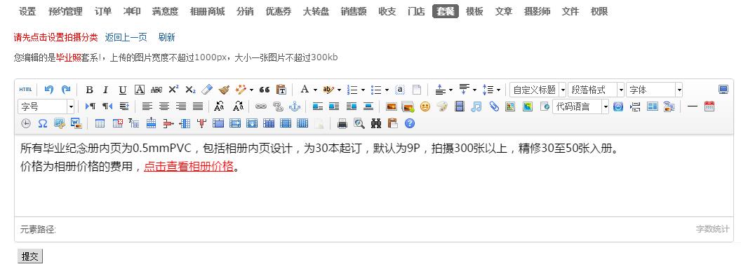 2018.6.11更新記錄1、首頁可以根據套系或者拍攝分類為入口,選擇分店后即跳轉到該套系或者拍攝分類2、套系描述增加了自定義描述套系內容3、增加了隱藏組合套系功能。 ...