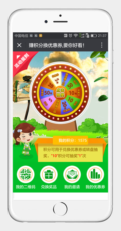大轉盤游戲是圍繞積分和優惠券展開,讓會員主動分享,以達到增加粉絲的效果,具體流程如下:已關注的粉絲可通過分享頁面或者分享二維碼給朋友或者朋友券,朋友通過其分享頁面的二維碼關注公眾號后,即可得積分,積分 ...