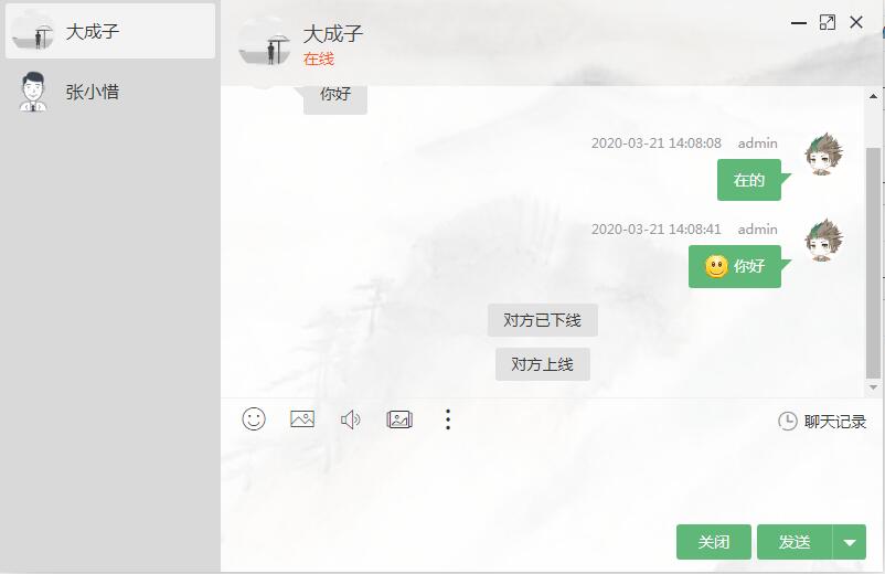 即時溝通im2.0版【聊天面板】:可自動獲取客戶訂單底片??呻S意移動面板。:支持設(shè)置用戶組。方便同事間的溝通,列出最近聯(lián)系人。主面板固定在頁面的右下角,可最小化,如下圖::后臺用戶可根據(jù)需要可設(shè)置默認展開 ...