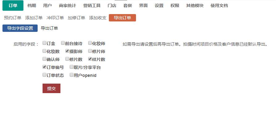 2019.12.06更新記錄1、增強了套系選擇功能1.1、套系新增了選擇組合的1.2、可設置單選、多選及加人數多種方式。1.3、多選可減價格,如證件照選擇多種背景色減價。1.4、加人模式可自動加價格,可設置升級體驗,如四宮 ...